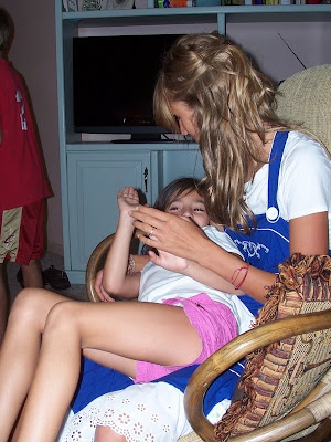 Soon after we had started swimming, our second cousins arrived with their children (who are our third cousins). Jessie (yes there are two--Jessie M and Jessie B, who just arrived) and Matthew. They were cute.